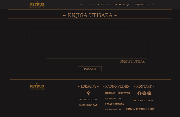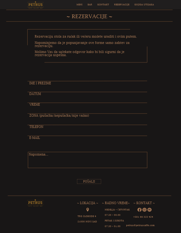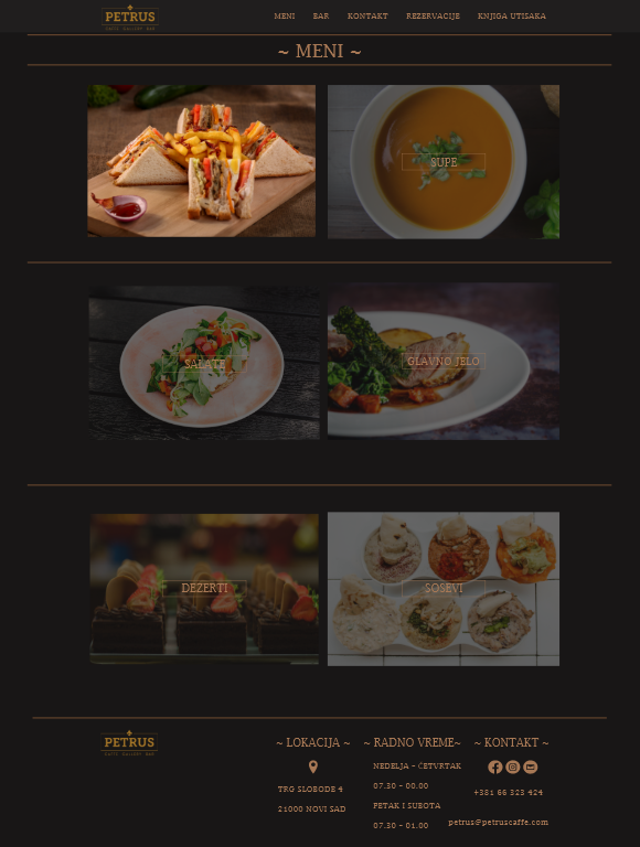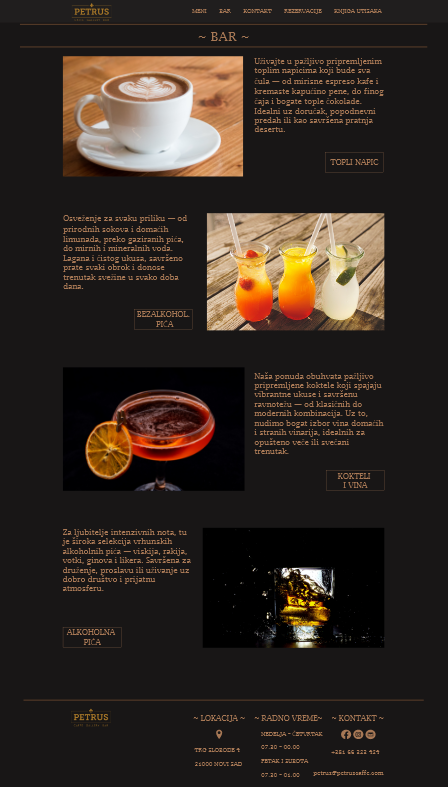 The home page of the Petrus restaurant website was created to capture the refined, luxurious, and slightly vintage ambiance that defines the restaurant. With Petrus known for its prestige and carefully crafted atmosphere, the design focuses on elegance, warmth, and sophistication. Additionally, the entire concept and visual execution were developed as part of a university project, showcasing both design skill and the ability to translate a brand’s identity into a polished digital experience.